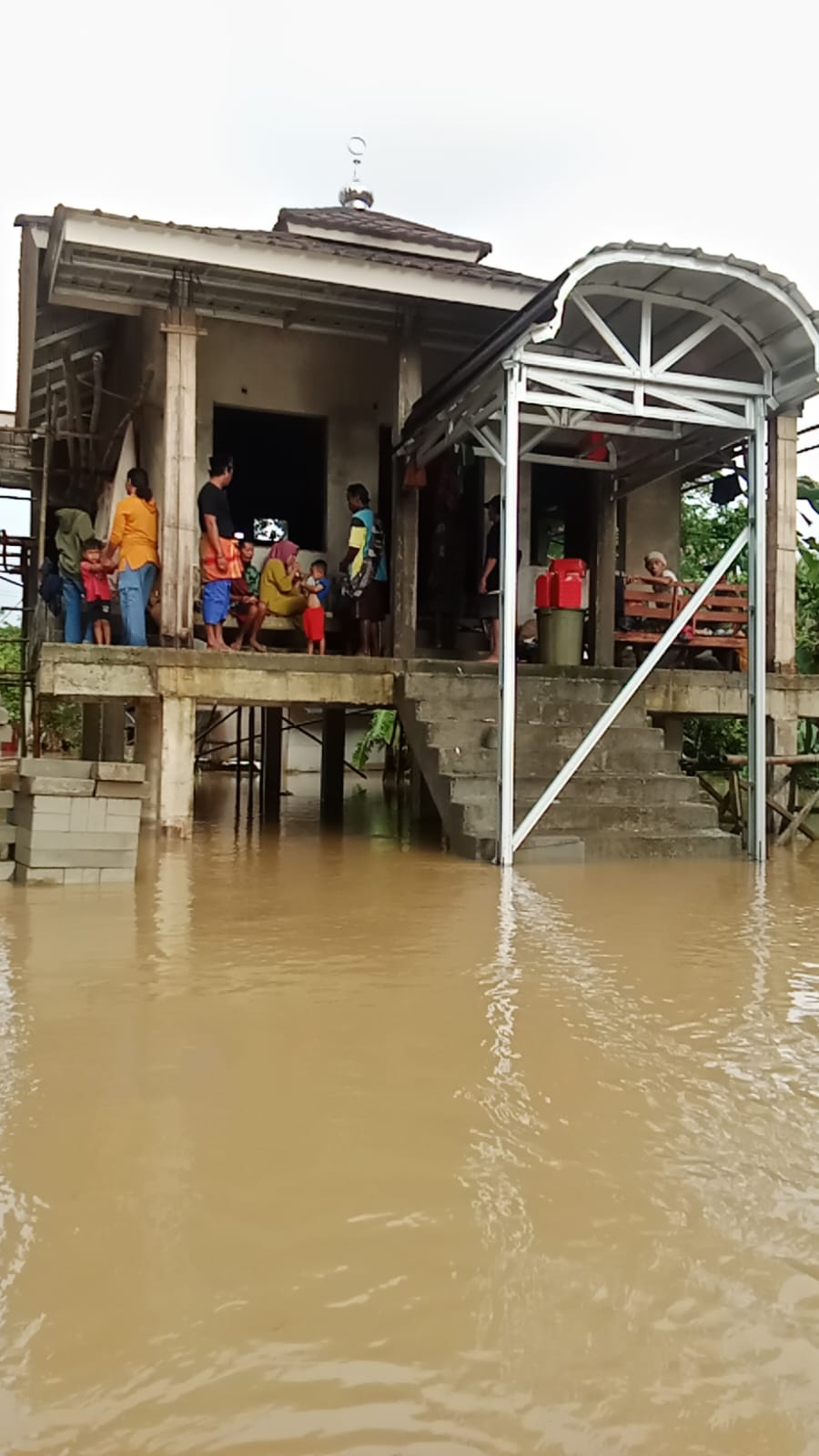 Meski belum rampung, mushola ini menjadi satu-satunya titik aman yang dapat digunakan warga demi menyelamatkan diri dari ancaman banjir yang terus meninggi.