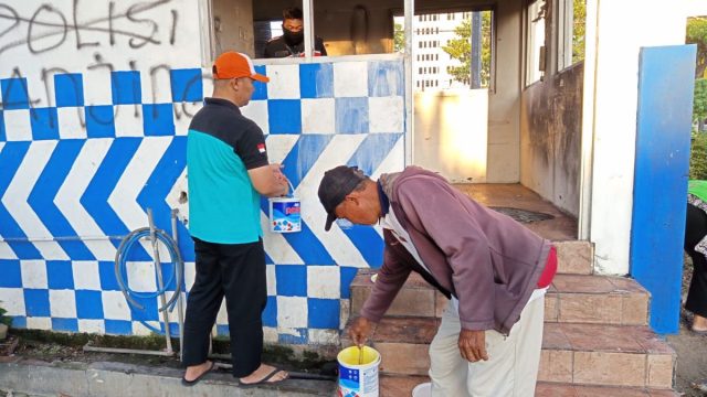 Surabaya |gabungnyawartawanindonesia.co.id.- Warga bersama driver ojol membersihkan pos polisi,...