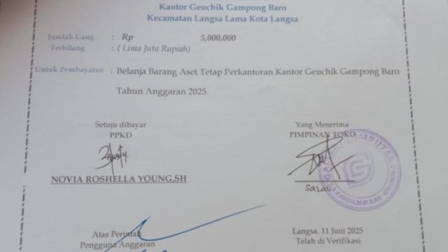 Terkait, Diduga Kasus Dana Desa Gampong Baro, Anggaran Belanja Aset Kantor Desa Tahun 2025,...