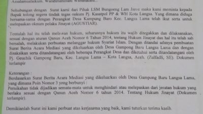 Terkait Terkesan Menantang, Pemberitaan Miring, Plt Kasat Pol PP & W.H Langsa, Prosesi Hukum Syariat…