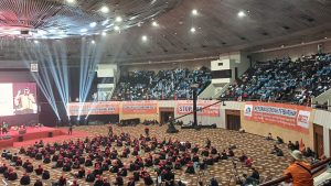 Suasana di JCC berlangsung penuh semangat namun tetap tertib. Spanduk-spanduk perjuangan yang bertuliskan seruan keadilan sosial dan kesejahteraan pekerja menghiasi setiap sudut ruangan. Sorak dukungan, yel-yel perjuangan, serta orasi penuh semangat menggema tanpa mengurangi suasana damai yang menjadi prinsip utama kegiatan ini.