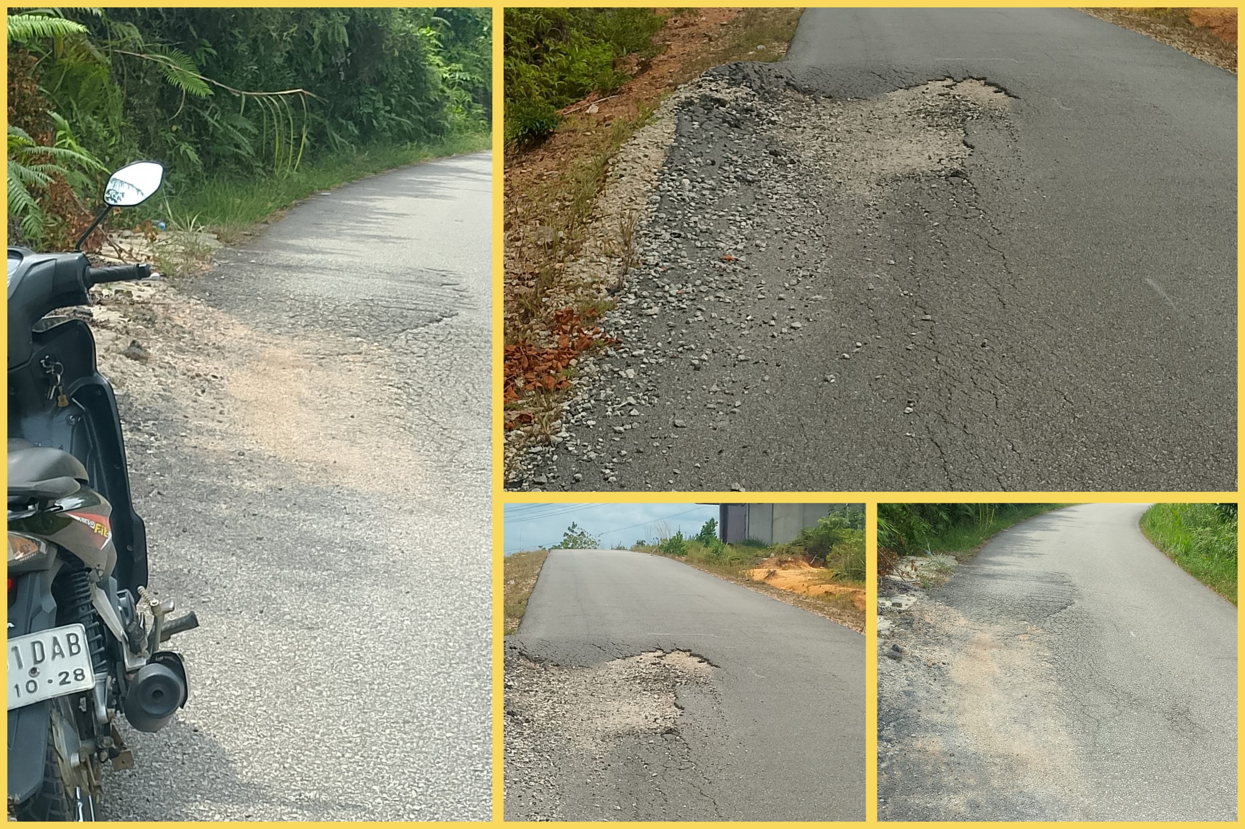 Kerusakan tersebut diduga akibat kurangnya perawatan berkala, sehingga badan jalan tidak lagi rata dan nyaman dilalui.