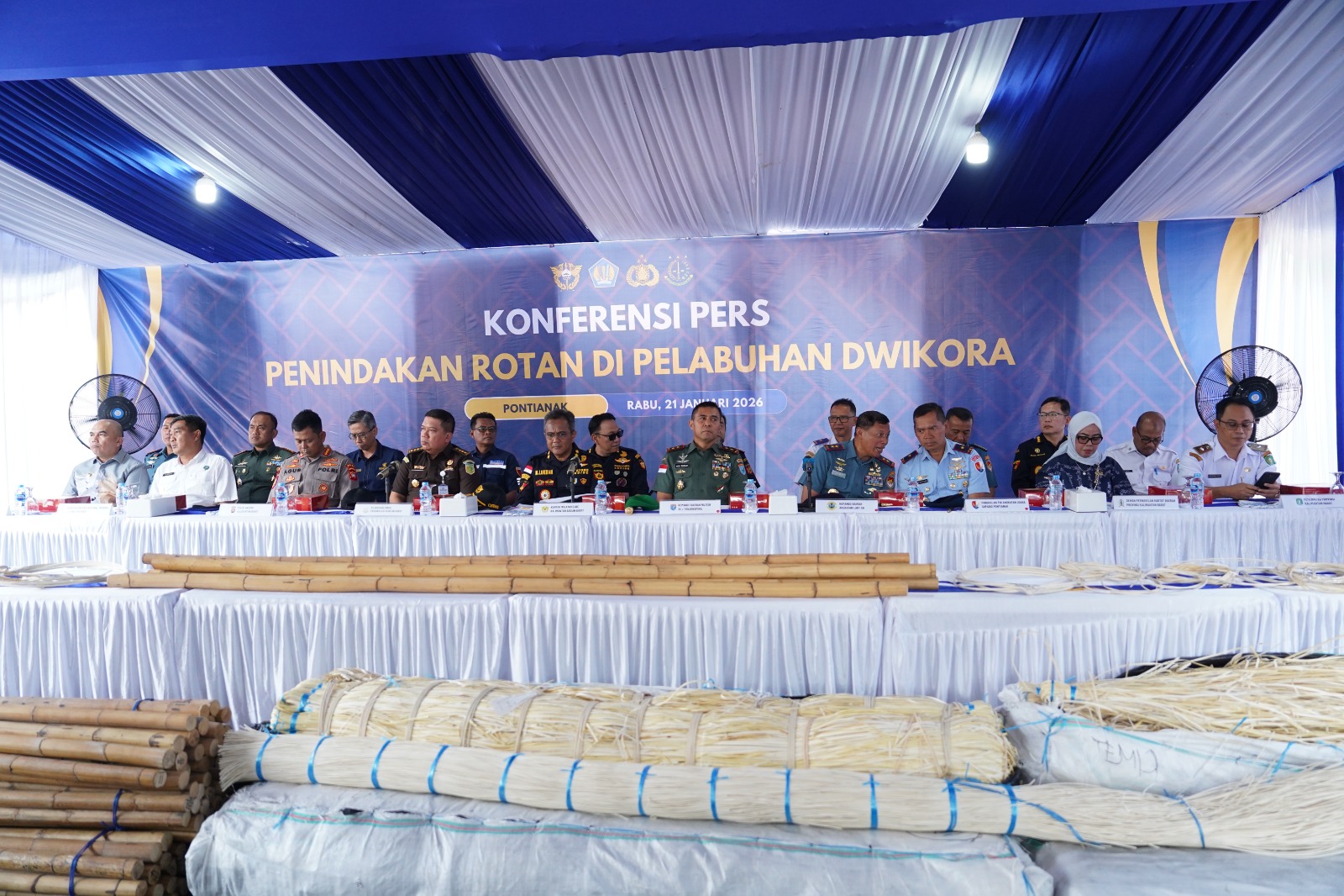 Hadir di Konferensi Pers Penindakan Rotan, Pangdam XII/Tpr Tegaskan Tak Ada Toleransi Bagi Penyelundupan Ilegal