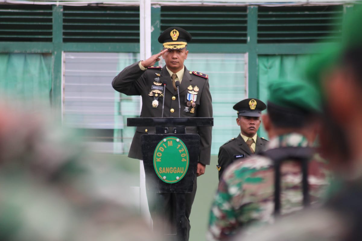 Wadan Yonif TP 833/BD Mayor Ikhwan Hadi dalam acara tasyakuran HUT ke 80 TNI di Kodim 1204/Sanggau-Sekadau menyampaikan ucapan selamat kepada TNI.