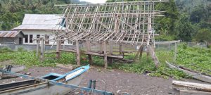 “Iya benar bahwa Rumah Adat milik Desa sempat di bangun dengan cara bergotong royong, tapi saat itu ada fenomena banjir rob (atau banjir laut pasang), sehingga kerangka bangunan yang belum selesai di bangun di sapu bersih, heran sekali kenapa laporannya kalau bagunan sudah selesai dibangun, bahkan memakan anggaran sampai sebesar itu,” katanya.