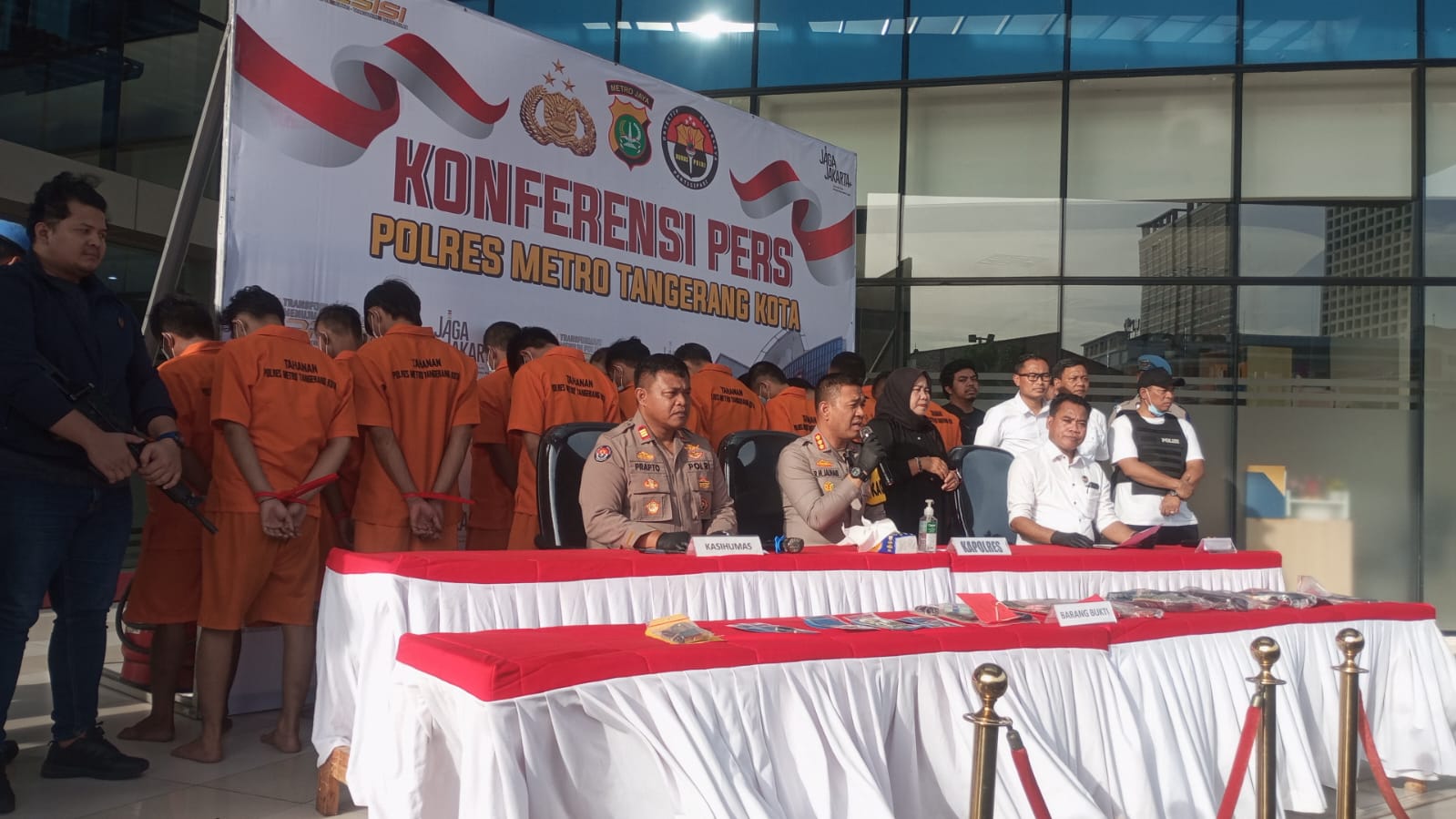 Polres Metro Tangerang Kota juga berhasil menyita barang bukti berupa 3 unit kendaraan roda 4, 21 unit kendaraan roda 2, 3 pucuk sajam, 7 buah letter T, 35 mata kunci palsu, 5 unit HP, 1 rekaman CCTV, 4 lembar STNK, dan 1 senpi mainan.