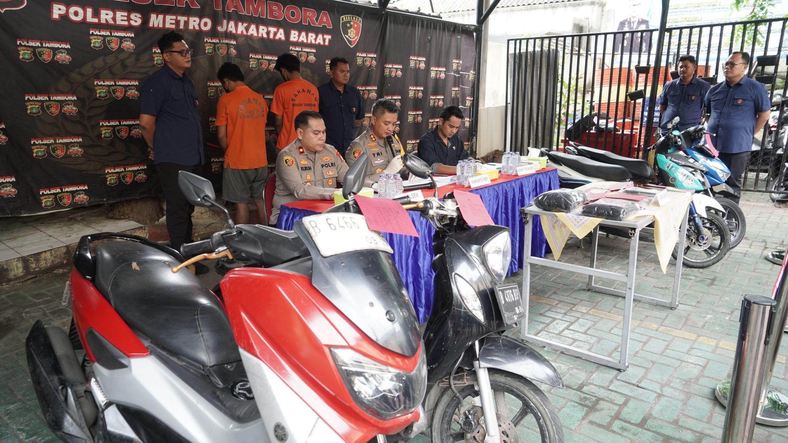 Dalam konferensi pers, polisi turut menampilkan empat sepeda motor hasil curian, termasuk satu motor yang digunakan para pelaku saat melakukan aksi begal viral di Jalan Songsi, Tambora.