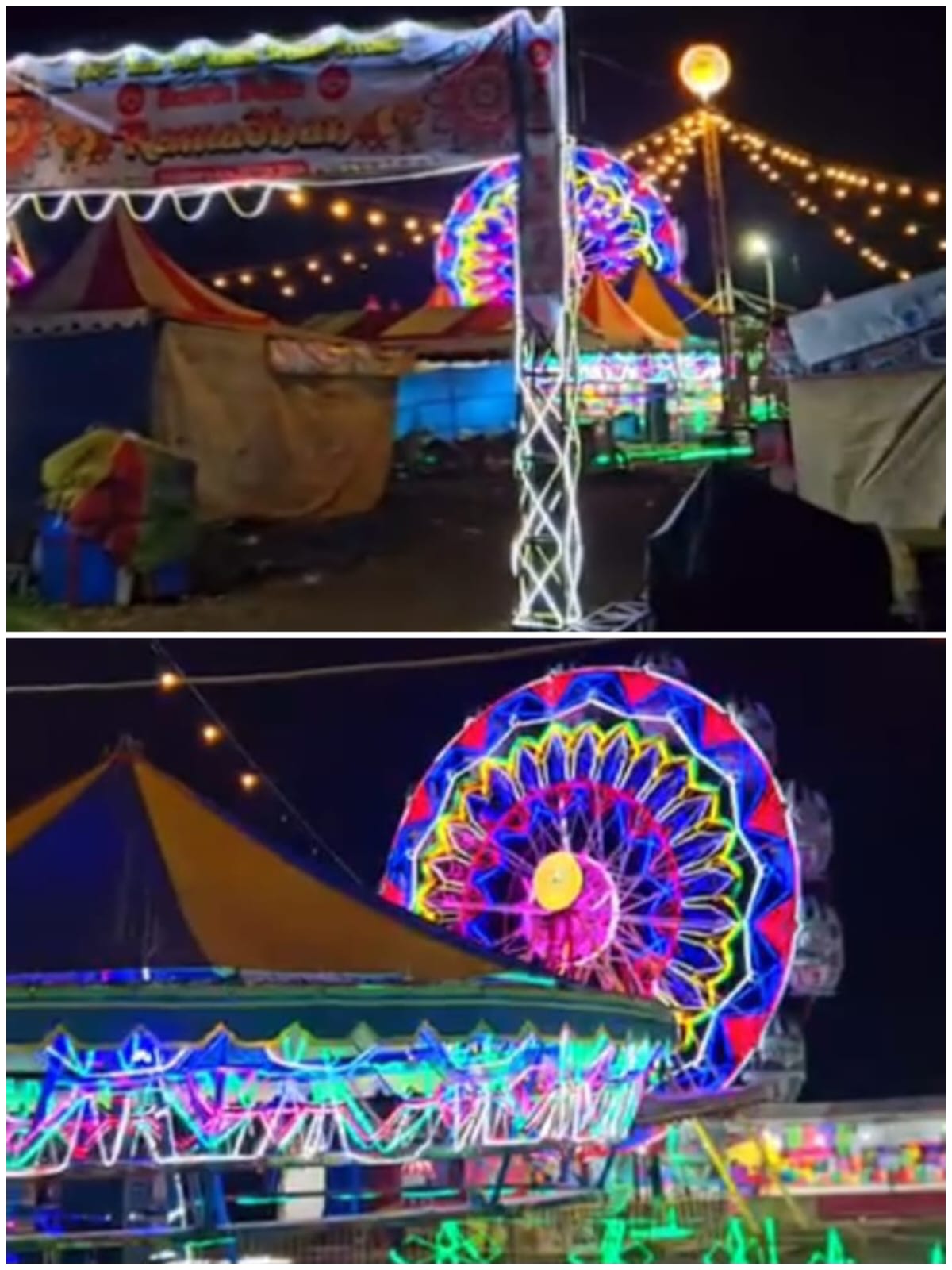 Sejak menjelang waktu berbuka puasa, masyarakat mulai memadati area hiburan. Anak-anak dengan wajah berbinar menggandeng tangan orang tuanya, remaja berkumpul penuh canda, sementara para orang tua menikmati suasana dengan senyum penuh syukur. Gemerlap lampu warna-warni yang menghiasi wahana permainan berpadu dengan alunan musik riang, menciptakan suasana hangat yang memancarkan kebersamaan dan kegembiraan.