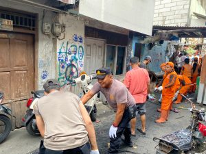 Ratusan personel dari unsur 3 Pilar Kecamatan Tambora bersama berbagai instansi turun langsung melakukan kerja bakti massal di lokasi kebakaran yang terjadi beberapa hari sebelumnya.