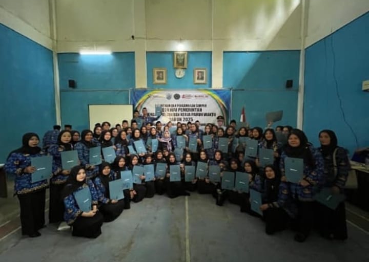Pandeglang-Banten – 23 Desember 2025 – Pelantikan dan pengambilan sumpah 112 PPPK paruh waktu di lingkungan Pemerintah Kabupaten Pandeglang berlangsung hidmat di Gedung PGRI Kecamatan Sindangresmi. Acara yang juga dilaksanakan secara online dihadiri 220 peserta dari berbagai instansi, antara lain guru, tenaga teknis, dan nakes.