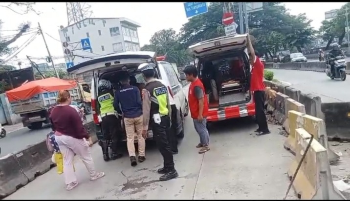 Melihat kondisi pasien yang membutuhkan pertolongan segera, petugas Polantas kemudian mengambil langkah cepat dengan mencari bantuan ambulans milik Pemerintah Provinsi DKI Jakarta.