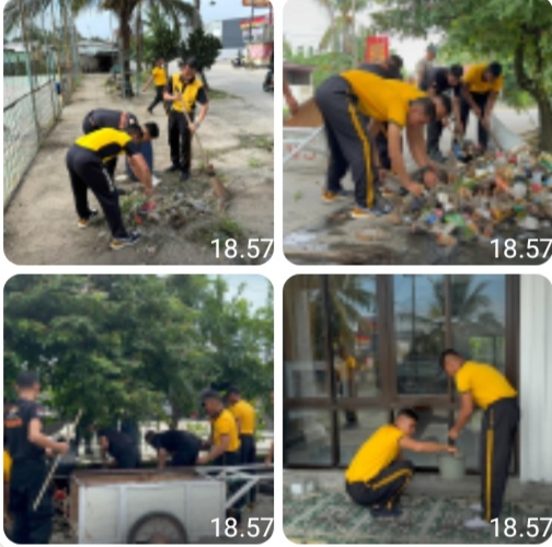 Kegiatan yang dimulai sejak pagi hari tersebut dilaksanakan bersama masyarakat sekitar dengan fokus membersihkan area masjid dan lingkungan sekitarnya. Personel Brimob bergotong royong membersihkan saluran air yang tersumbat, merapikan area tempat ibadah, serta memastikan lingkungan masjid kembali bersih, rapi, dan nyaman untuk digunakan beribadah.
