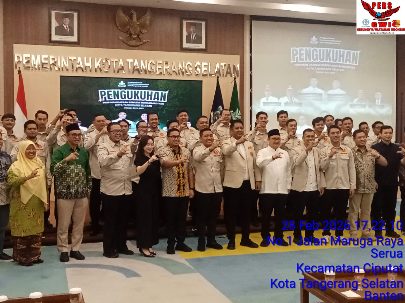Gabungnyawartawanindonesia.co.id ll Pelantikan dan Pengukuhan Pimpinan Daerah Pemuda Muhammadiyah (PDPM) Kota Tangerang Selatan Periode 2025–2029 berlangsung khidmat pada Sabtu, 28 Februari 2026. Kegiatan tersebut digelar di Aula Blandongan Kantor Wali Kota Tangerang Selatan dengan mengusung tema “Pemuda Berkarya, Tangsel Berdaya: Manifestasi Dakwah Kolaboratif untuk Solusi Nyata di Kota Tangerang Selatan”.