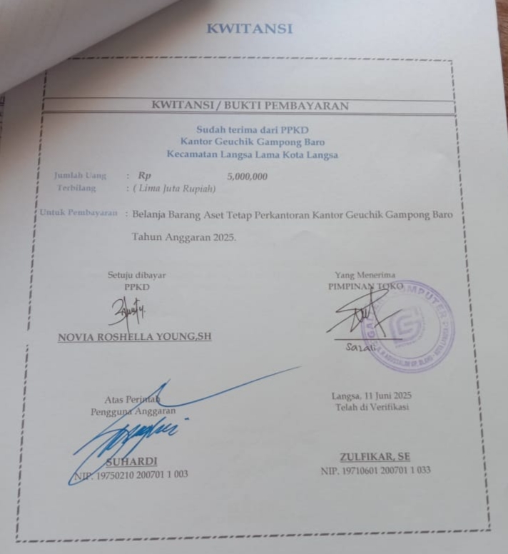 Diduga adanya oknum jaksa langsa, lakukan penyalahgunaan wewenang jabatan. Terkait, diduga kasus dana desa gampong baro. Dugaan di lakukan oleh pejabat (pj) geuchik gampong baro kecamatan langsa lama kota langsa, yang telah melakukan anggaran belanja aset kantor desa. Sejenisnya, laptop dan printer, diduga tidak sesuai dengan nilai dasar list daftar belanja dari berasal toko GK. Tepatnya, di desa gampong blang kecamatan langsa kota provinsi aceh. Dengan mencapai sejumlah senilai sekitar Rp. 25 juta rupiah, sesuai dengan bukti-bukti lembaran dokumen kwitansi desa gampong baro tersebut.