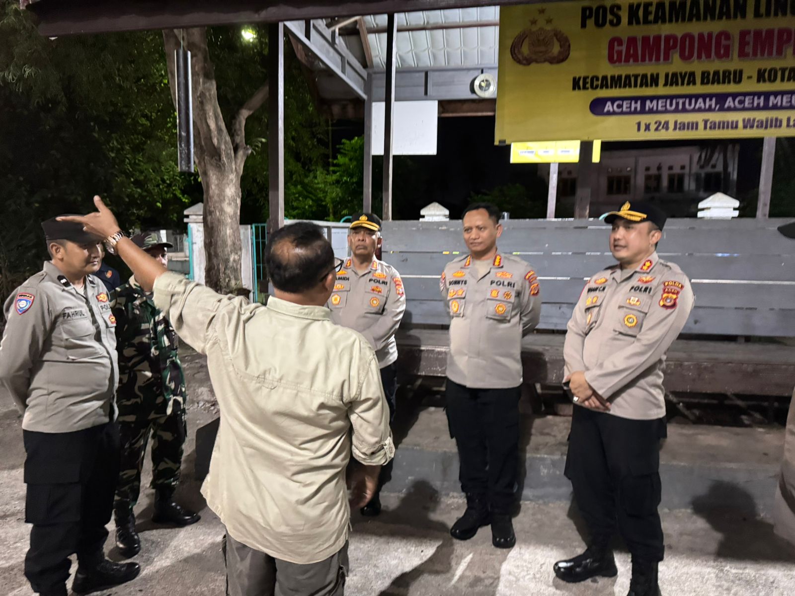 Ia juga mengajak seluruh pihak, mulai dari Bhabinkamtibmas, Babinsa, keuchik, linmas, hingga warga desa, agar kompak menjaga Kamtibmas. Menurutnya, setiap permasalahan sekecil apapun dapat segera diselesaikan apabila ada kebersamaan dan respon cepat dari seluruh elemen yang ada.