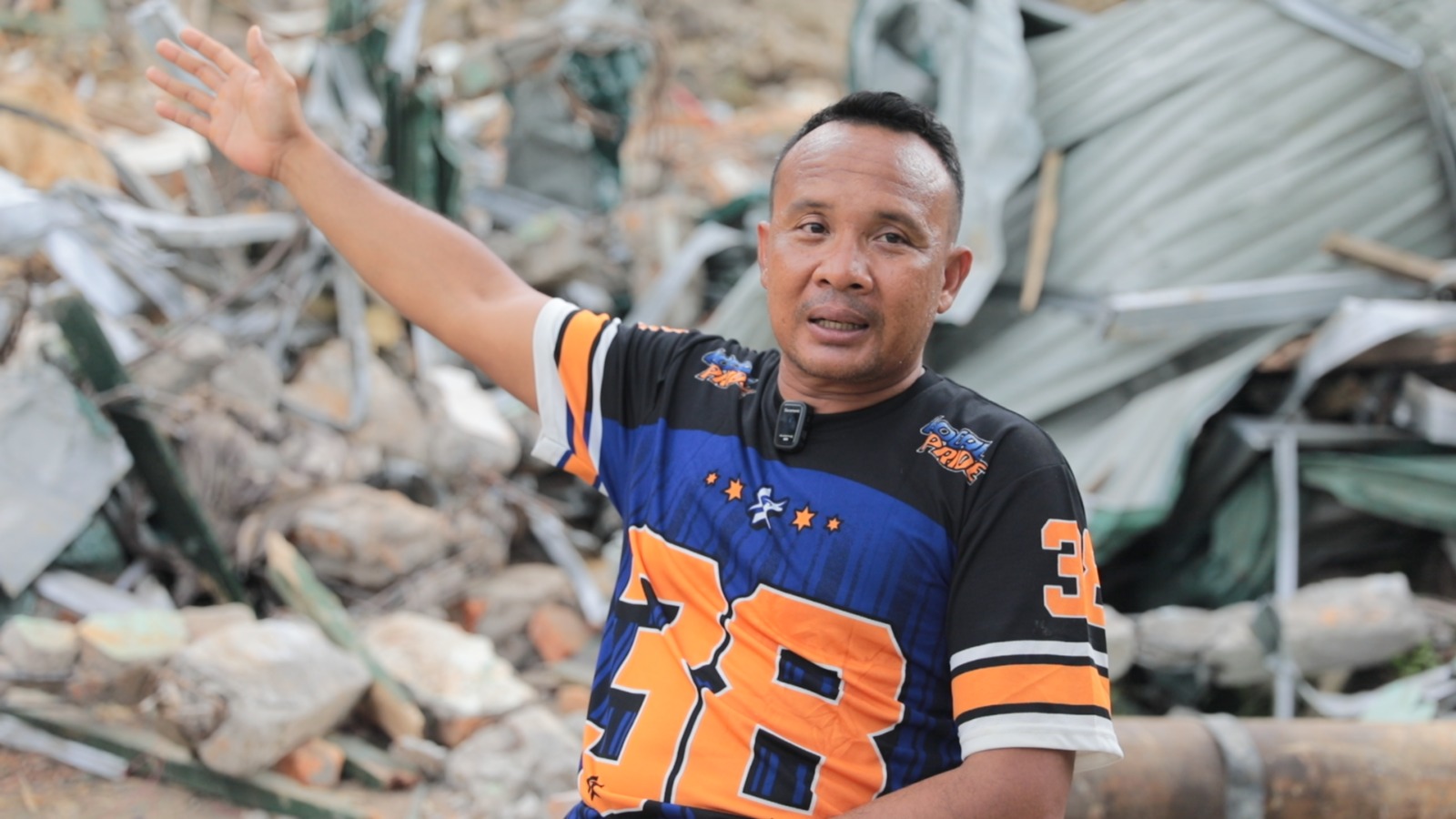 Hamzah pun harus merelakan istrinya mengembuskan nafas terakhir dalam impitan beton. Kemudian, sayup-sayup terdengar suara anak pertamanya, Bintang, meminta tolong. “Pak, tolong Bintang.”