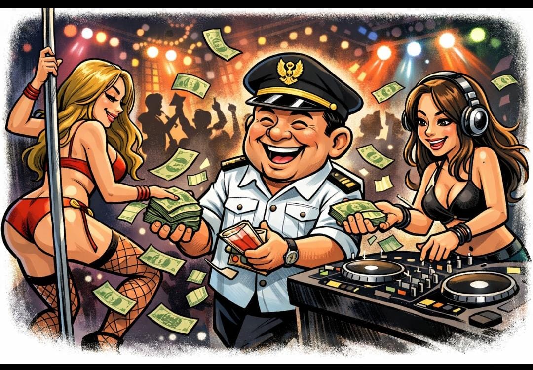 Seorang kepala desa berinisial TS menuai sorotan tajam setelah jejak kehadirannya di sebuah tempat hiburan malam (THM) pada Sabtu dini hari pukul 01.42 WIB. TS tampak asyik berpesta, membagikan uang kepada seksi dancer dan menyelipakan lembaran uang ke bagian dada DJ wanita.