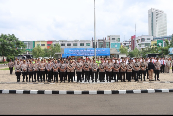 Upacara sertijab dipimpin langsung oleh Kapolres Metro Tangerang Kota, Kombes Pol. Dr. Raden Muhammad Jauhari, S.H., S.I.K., M.Si., serta dihadiri para pejabat utama, kapolsek jajaran, dan personel Polres maupun Polsek.