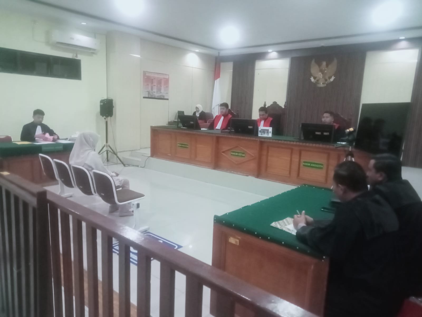 Korban “Massyura” dan keluarga terperangah sejenak, saat mendengar putusan 8 bulan dan ketuk palu hakim sebanyak 3 kali. Saat itu pula tampak 3 majelis hakim dengan terburu-buru bergegas beranjak dari kursinya, dan meninggalkan meja hijau menghilang dari pandangan.