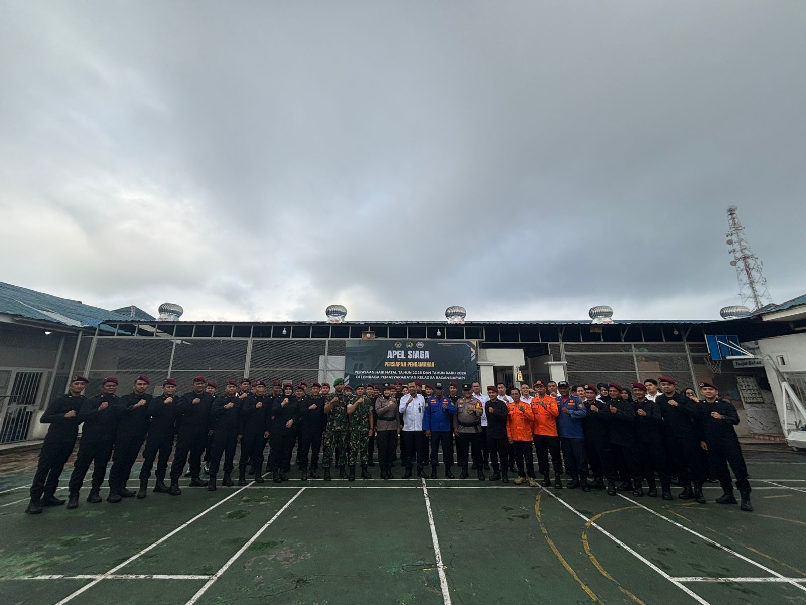 Bagansiapiapi ll gabungnyawartawanindonesia.co mid ll rabu ( 24/12/2025)- Kepala Lembaga Pemasyarakatan (Kalapas) Kelas IIA Bagansiapiapi, Agus Imam Taufik, A.Md, IP., SH , MH bersama Ka.KPLP, Sigit Pramono, A. Jd., IP., S. Sos, melaksanakan Apel siaga ini dilaksanakan untuk mengantisipasi kemungkinan munculnya gangguan keamanan dan ketertiban terutama pada masa Perayaan Natal 2025 dan Tahun Baru 2026.