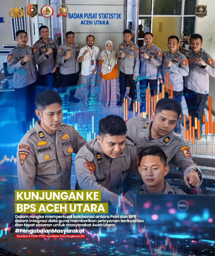 Dalam pelaksanaannya, Mahasiswa STIK Angkatan 83 berkoordinasi langsung dengan jajaran Badan Pusat Statistik Kabupaten Aceh Utara guna memperoleh gambaran terkait sistem pendataan, pemetaan wilayah terdampak, serta dukungan data statistik dalam perencanaan logistik.