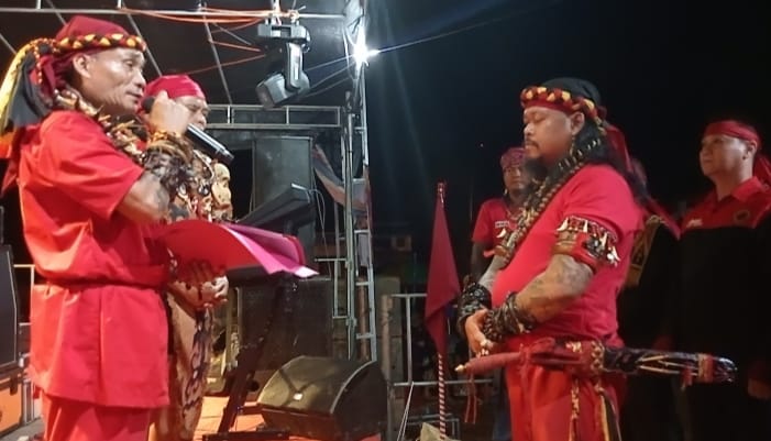 Pengukuhan tersebut dilakukan dalam kegiatan Deklarasi Terbuka Mangkok Merah Borneo Bersatu yang dirangkaikan dengan atraksi budaya Dayak, bertempat di halaman eks Gedung Dekranasda Bengkayang, Jalan Basuki Rahmat, Kelurahan Bumi Emas, Kabupaten Bengkayang, Kalimantan Barat, Jumat malam (19/12/2025).