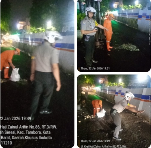 Kapolsek Tambora Polres Metro Jakarta Barat Kompol Muhamad Kukuh Islami, S.I.K., M.I.K., menyampaikan bahwa kehadiran Bhabinkamtibmas di tengah masyarakat tidak hanya bertugas menjaga keamanan, namun juga aktif berperan dalam membantu menyelesaikan permasalahan lingkungan yang berpotensi mengganggu keselamatan dan ketertiban umum.