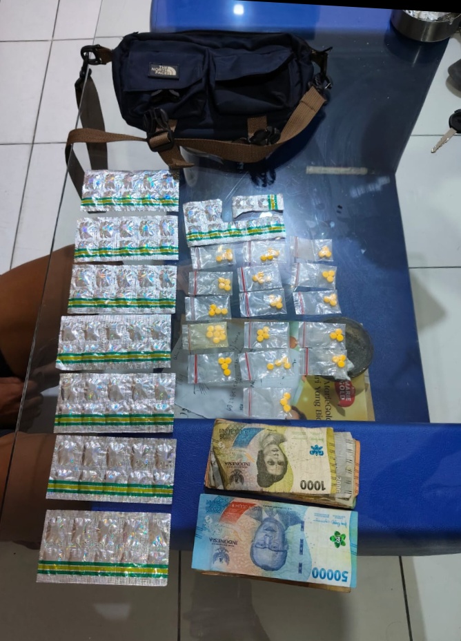 Dalam penggeledahan, petugas menemukan barang bukti berupa 79 butir Tramadol, 61 butir Hexymer, serta uang tunai hasil penjualan obat sebesar Rp220 ribu. Selain itu, turut diamankan satu unit sepeda motor dan tas selempang yang digunakan pelaku saat beroperasi.