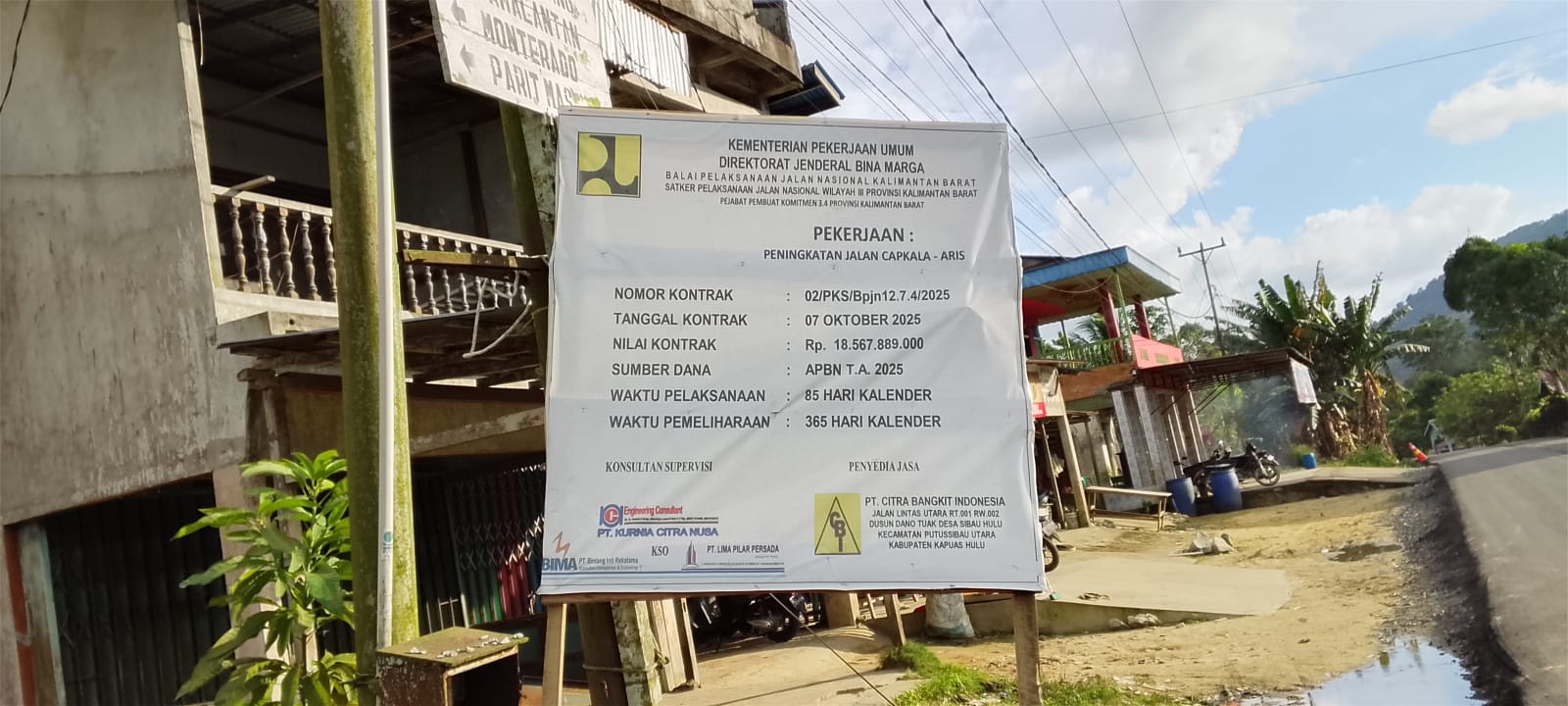 Berdasarkan papan informasi proyek, pekerjaan Jalan Capkala–Aris dimulai pada 7 Oktober 2025 dengan masa pelaksanaan 85 hari kalender.