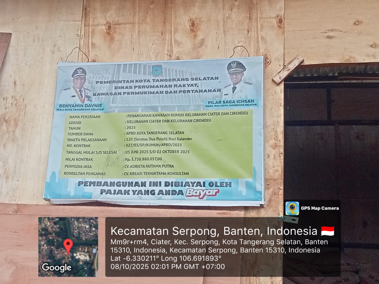 Tangsel ll gabungnyawartawanindonesia.co.id ll Proyek pembangunan balai warga di jl.tandon Ciater Kelurahan ciater Kecamatan Serpong Tangerang Selatan ,yang menelan anggaran Rp,3.758.880.057,00 dari APBD kota Tangerang Selatan Tahun Anggaran 2025 .kini menuai sorotan tajam dari berbagai kalangan control sosial dan masyarakat, pekerjaan yang di laksanakan oleh CV .ADRISTA HUTAMA PUTRA di Duga sarat penyimpangan teknis dan lemah nya pengawasan dari instansi terkait..selasa 14/10/2025