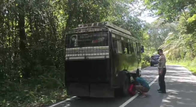 Bus yang mengalami kendala mesin akibat “masuk angin” tersebut sempat mengganggu kelancaran arus kendaraan di jalur utama. Menindaklanjuti laporan warga, petugas Satlantas Polres Bengkayang segera mendatangi lokasi dan membantu pengemudi memperbaiki bus serta mengatur arus lalu lintas di sekitar tempat kejadian.