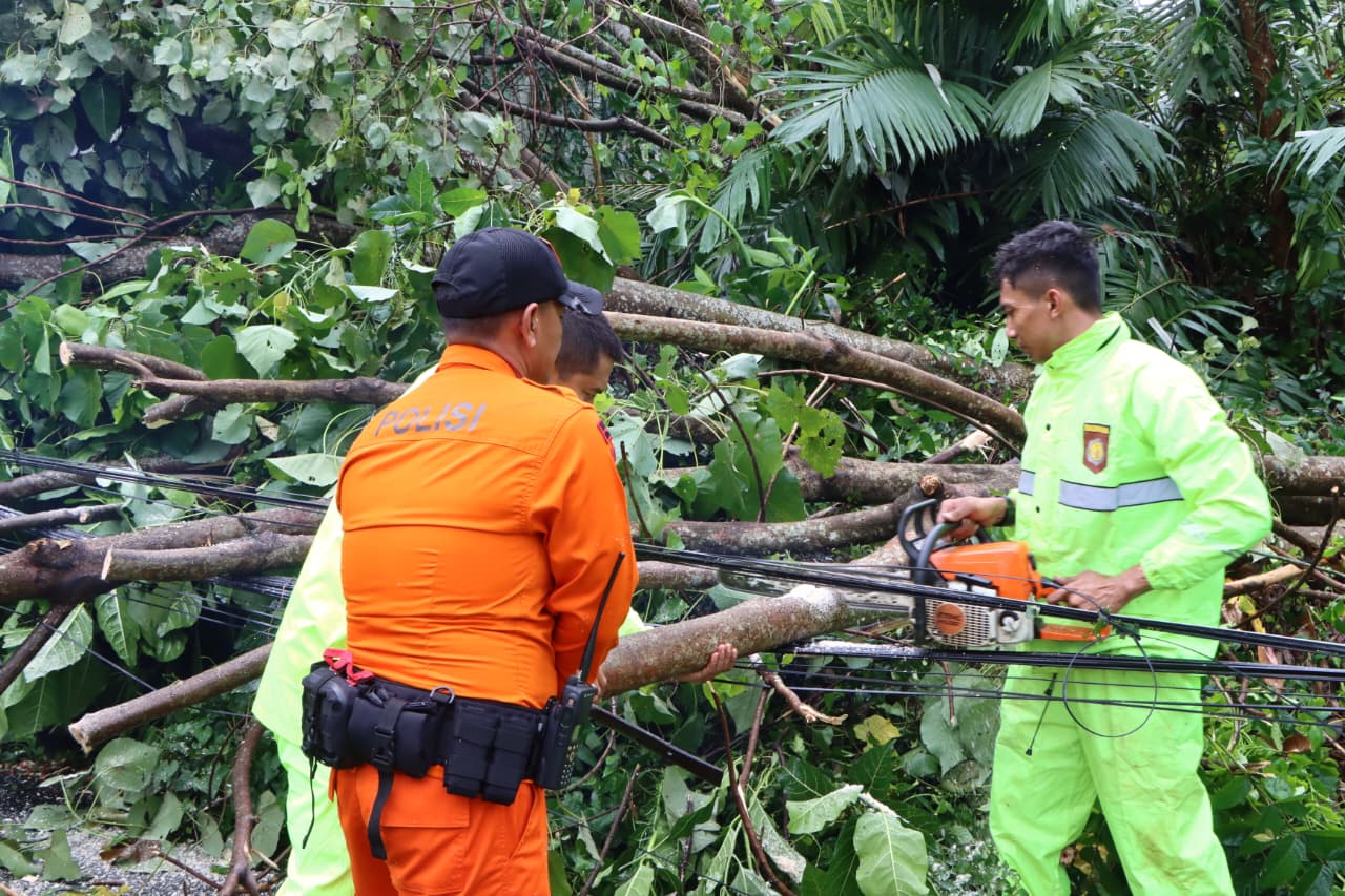 “Begitu mendapat laporan, kami segera turunkan tim dari Polres dan Polsek jajaran untuk mengevakuasi pohon tumbang serta membantu warga terdampak. Kami pastikan seluruh akses jalan kembali aman dan bisa dilalui,” ungkap AKBP Veronica, S.H., S.I.K., M.Si.