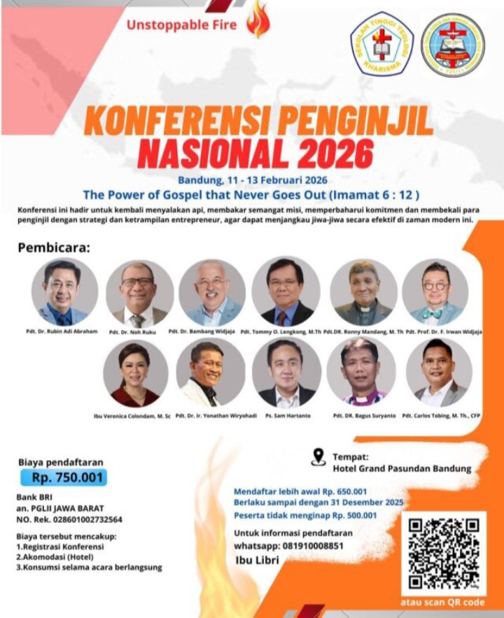 Kondisi inilah yang melatarbelakangi digelarnya Konferensi Penginjil Nasional 2026, yang akan berlangsung pada 11–13 Februari 2026 di Bandung. Konferensi ini tidak sekadar diposisikan sebagai acara rohani biasa, melainkan sebagai ruang jeda, pemulihan, dan kebangkitan kembali api pelayanan.