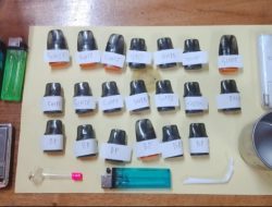 Dari tangan para pelaku, petugas mengamankan sejumlah barang bukti berupa 14 cartridge liquid mengandung zat sintetis, enam cartridge bekas pakai, satu buah cangklong, satu timbangan digital kecil, serta tiga tabung whipping gas.