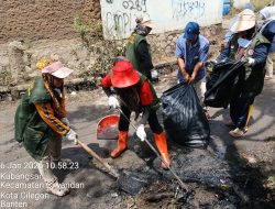 Cilegon – Plt Lurah Kelurahan Kubang Sari, menunjukkan kesigapan dan kepeduliannya terhadap kebersihan lingkungan dengan memimpin langsung pembersihan sampah pasca banjir di Link Cigading, pasar penawuan RT /RW 001/002 Kubang Sari.
