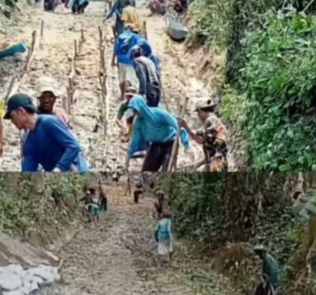 Semangat gotong royong ini menjadi cermin bahwa pembangunan tidak selalu bergantung pada pemerintah, melainkan juga bisa lahir dari kesadaran dan kebersamaan masyarakat itu sendiri. Ujar opoung