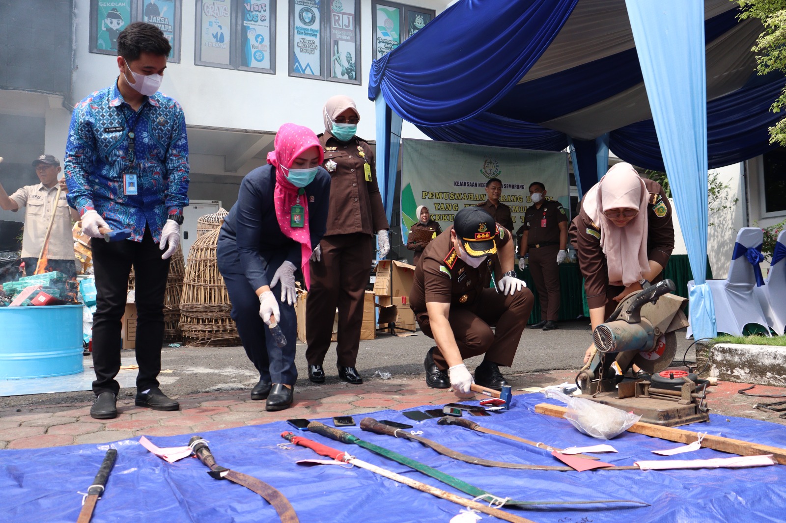 SEMARANG,gabungnyawartawanindonesia.co.id – Ribuan barang bukti hasil tindak pidana yang telah berkekuatan hukum tetap dimusnahkan Kejaksaan Negeri (Kejari) Kota Semarang, Jawa Tengah, Selasa (7/10).