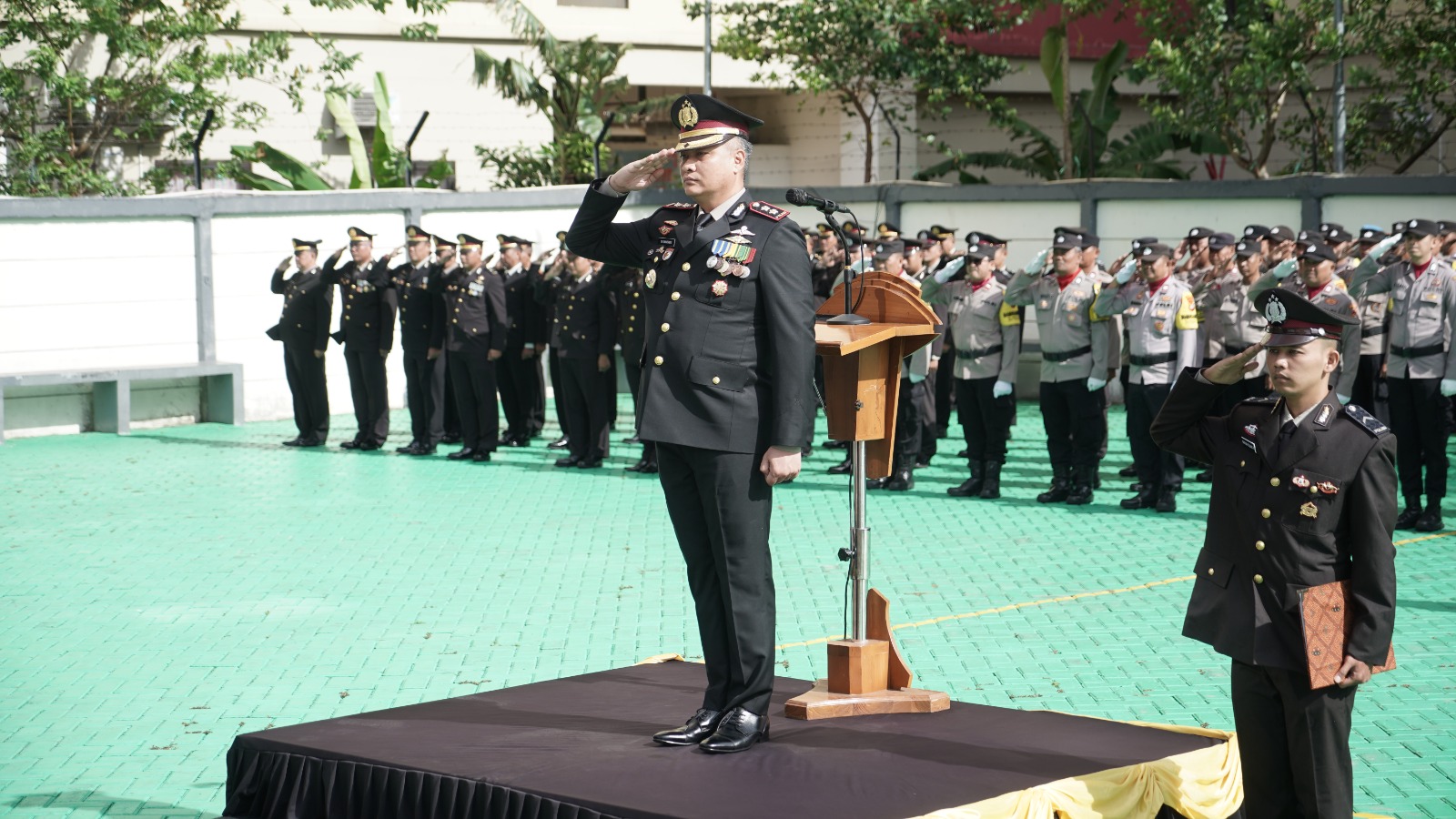 “Menjadi anggota Polri berarti melanjutkan perjuangan para pahlawan dengan sepenuh hati, memastikan masyarakat merasa aman, hukum ditegakkan dengan adil, dan pelayanan publik diberikan dengan tulus,” demikian amanat Kapolda yang dibacakan.