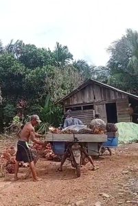 Beberapa hari terakhir, warga mengaku kesulitan menjual hasil panen karena para pembeli buah sawit takut masuk ke wilayah konflik. Akibatnya, warga harus mengangkut hasil panen menggunakan sepeda motor secara manual.