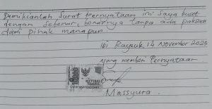 Aceh Timur |gabungnyawartawanindonesia. co.id.- Sesuai adanya surat pernyataan, yang telah di terima oleh aktivis lembaga swadaya masyarakat (lsm) bungoeng lam jaroe aceh di aceh timur. Pada tertanggal, di idi rayeuk 14 november 2025 bulan lalu. Yang memberikan pernyataan ke pihak lsm bungoeng lam jaroe aceh itu, di sebut-sebut sapaan panggilan “massyura” yang masih berstatus mahasiswi universitas daerah kota langsa.