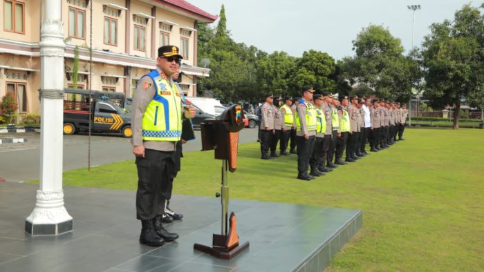 Apel diikuti pejabat utama Polres, para Kapolsek jajaran, serta personel dari satuan siaga bencana