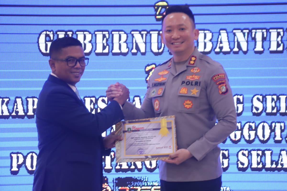 Selain memberikan penghargaan, Gubernur Banten juga mengucapkan selamat atas promosi jabatan baru Kapolres Tangsel.