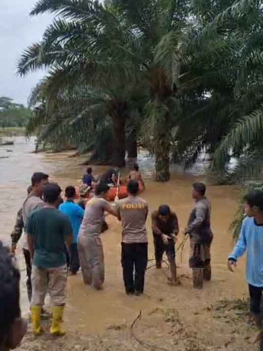 Kegiatan evakuasi Kapolsek Cot Girek terhadap anggota Polsek Langkahan Dan masyarakat yang terjebak banjir dilakukan pada Kamis, 27 November 2025 lalu.