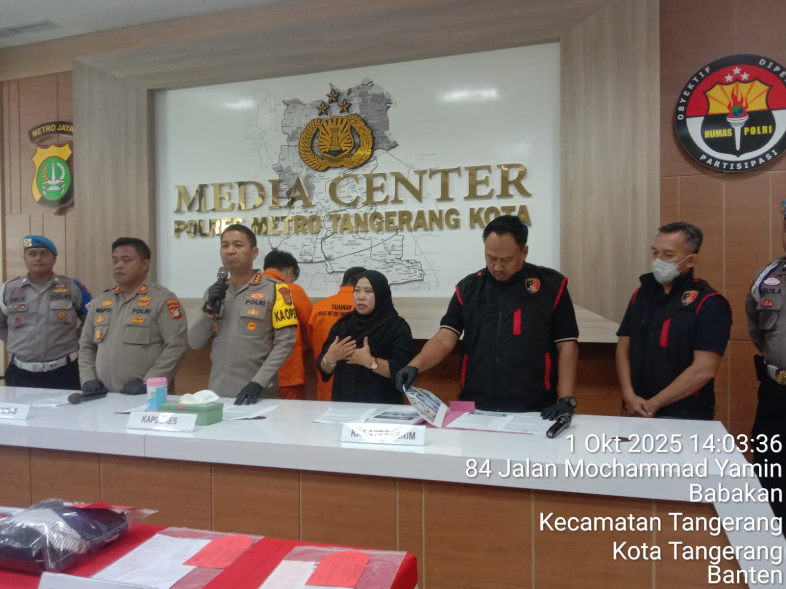 Polres Metro Tangerang Kota saat menggelar konferensi pers terkait penyebab kematian perempuan muda di Hotel Golden Tulip.