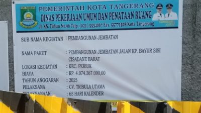 Tangerang – gabungnyawartawanindonesia.co.id ll Proyek Pembangunan Jembatan Jalan Kampung Bayur Sisi Cisadane Barat di Kecamatan Periuk, Kota…