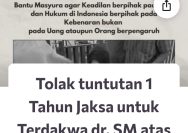 Solidaritas Netizens, Buat Petisi Di Change.Org, Tolak Tuntutan 1 Tahun Oleh Jaksa, Untuk Terdakwa Dr.SM Atas Kasus Tabrakan Beruntun.
