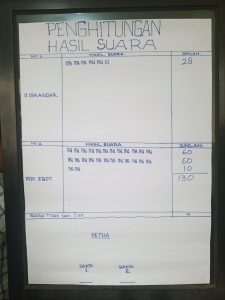 Bang Ebot yang merupakan calon dengan nomor urut 02, unggul setelah melalui proses penghitungan suara yang dilakukan secara transparan di hadapan warga. Suasana pemilihan berjalan tertib, aman, dan penuh semangat kebersamaan.