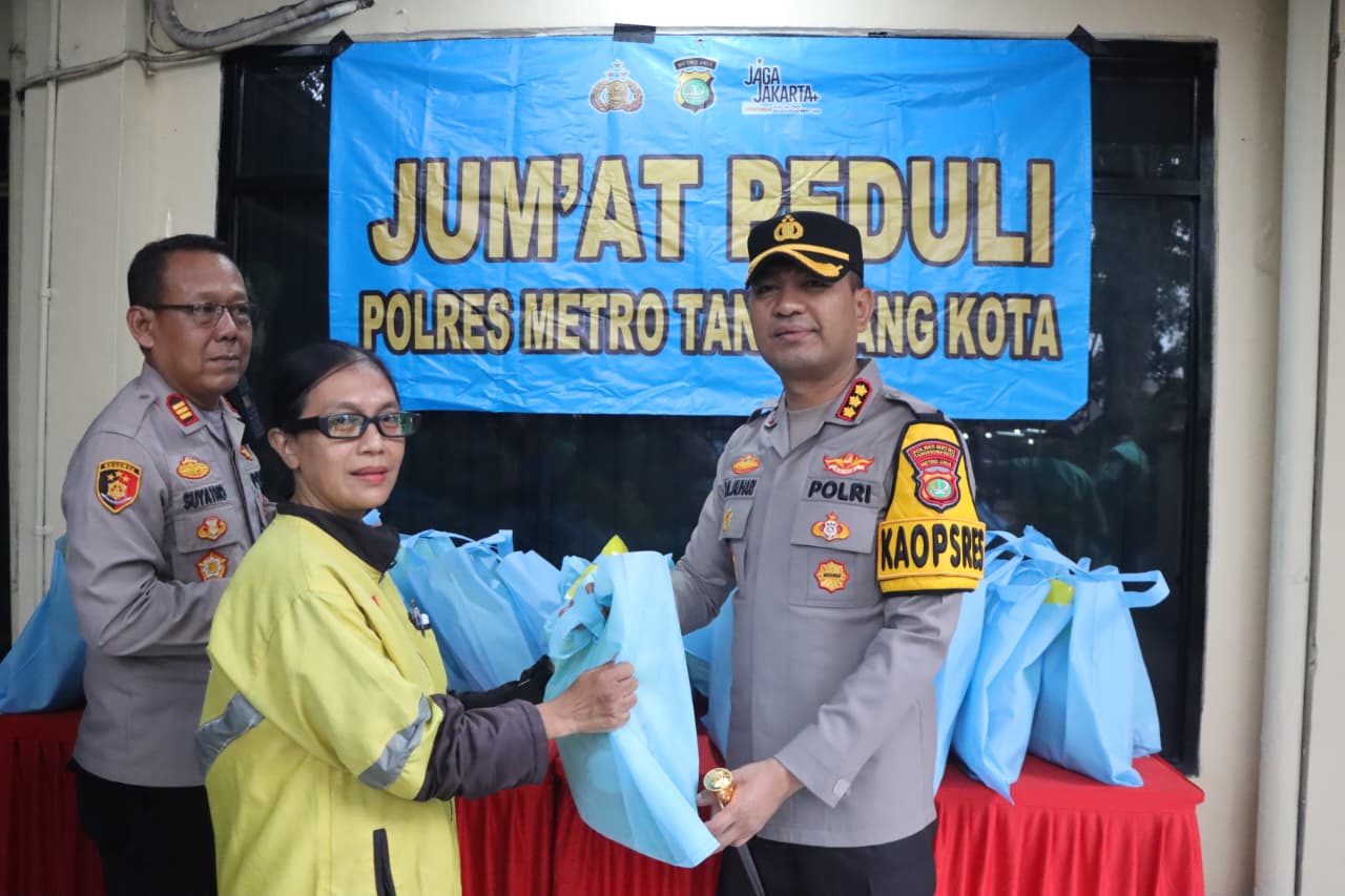 Tangerang, gabungnyawartawanindonesia.co.id., – Polres Metro Tangerang Kota kembali melaksanakan kegiatan Jumat Peduli, sebuah program berbagi dan silaturahmi dengan masyarakat. Pada Jumat (5/12/2025), kegiatan dipimpin langsung oleh Kapolres Metro Tangerang Kota Kombes Pol. Dr. Raden Muhammad Jauhari, S.H., S.I.K., M.Si., bertempat di halaman Mapolsek Tangerang, Jalan TMP Taruna, Sukasari.